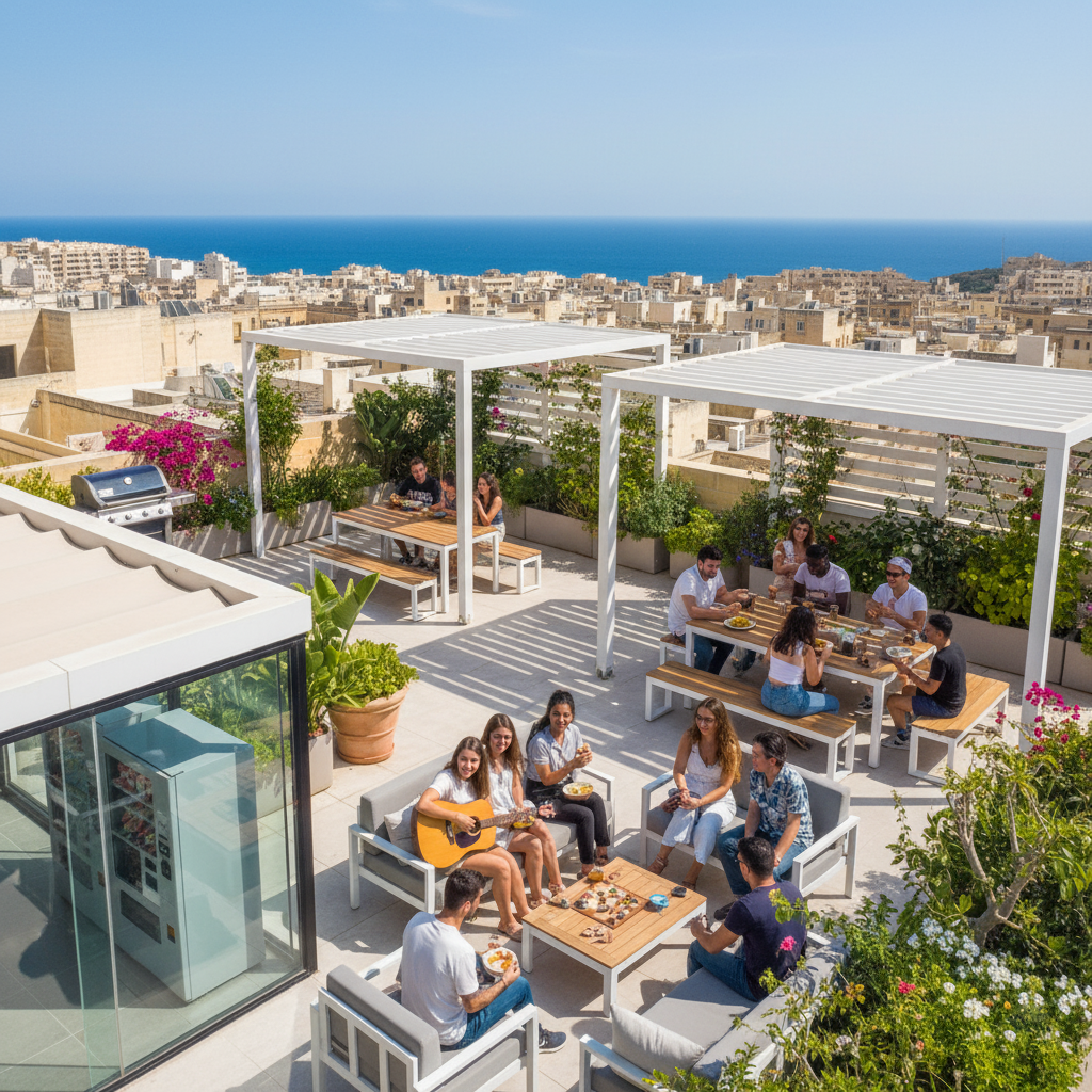 The rooftop garden truly comes alive with activity! Imagine soaking up the Mediterranean sunshine, joining in one of our lively student BBQs, or participating in a fun extracurricular activity. It’s more than just a garden; it’s a peaceful, social hub that offers a wonderful retreat from the rigors of study, enriching your entire learning experience at EEC-ITIS.